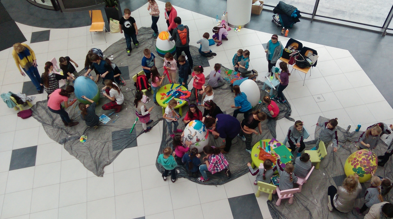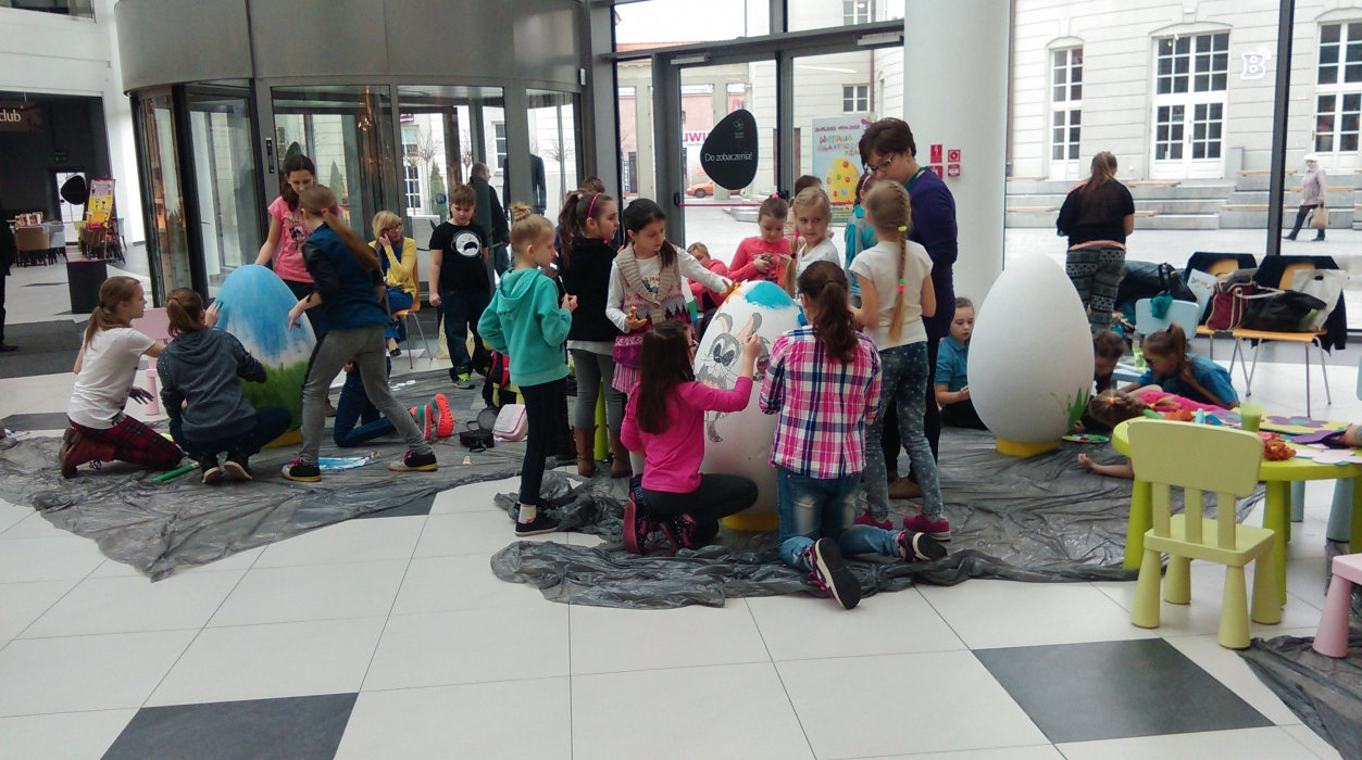 Dzisiaj (26 marca) w Galerii Siedlce odbyło się przedświąteczne malowanie pisanek. Do współpracy w promowaniu tradycji wielkanocnych zaproszono delegację uczniów i nauczycieli z sześciu siedleckich szkół podstawowych. Dekoracja i technika prac była dowolna, wszystko zależało od kreatywności i fantazji dzieci. Uczniowie inspirowani swoją wyobraźnią tworzyli kolorowe kwiatki, świąteczne zajączki i koszyczki. Malowanie rękoma, pędzlami, przyklejanie bibuły, a nawet płyt pokazało z jak wielkim zaangażowaniem dzieci podeszły do tego twórczego iwentu. Tę aktywność poza szkolną zorganizowała „Wytwórnia Kreatywnych Wydarzeń”, sponsorem zaś była Galeria Siedlce. Uczestnicy otrzymali dyplomy oraz atrakcyjne upominki. Świąteczne pisanki będą brały udział w konkursie, który można śledzić na Facebooku Galerii Siedlce. Zachęcamy wszystkich do obejrzenia i głosowania. Wystawa gigantycznych jajek potrwa do 7 kwietnia i każdy z nas może osobiście ocenić twórczość naszych siedleckich uczniów.