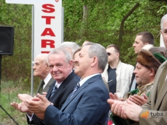 Przecinanie wstęgi odbyło się z wielką pompą. Nie zabrakło nawet wystrzałów na wiwat, które zapewniło zaproszone przez Apoloniusza Tajnera Podlasko-Kozieradzkie Bractwo Kurkowe.