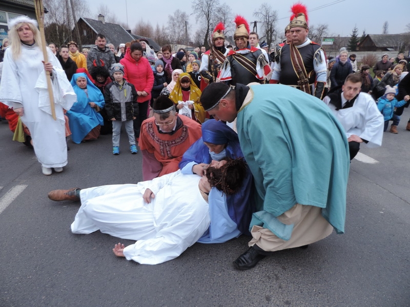 W Wielki Piątek, 25 marca 2016 r., wierni uczestniczyli w Drodze Krzyżowej. Misterium przedstawiono na ulicach Skórca.