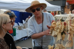 Na jarmarcznych straganach można zaopatrzyć się m.in. w tradycyjne przysmaki i ozdoby, rękodzieła oferowane przez wystawców.