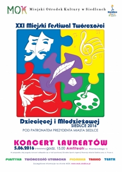 5 maja o godzinie 15.00 w Amfiteatrze przy ulicy Wiszniewskiego 1 odbędzie się Koncert Laureatów XXI Miejskiego Festiwalu Twórczości Dziecięcej i Młodzieżowej 2016 Pod patronatem Prezydenta Miasta Siedlce 2016. W przypadku złej pogody koncert odbędzie się w hali sportowej Ośrodka sportu agencji Rozwoju Miasta Siedlce przy ulicy Prusa 6.