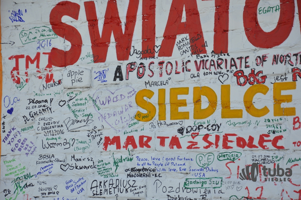 Innym punktem pożegnania pielgrzymów, było odsłonięcie muralu przedstawiającego charakterystyczne dla Siedlec budynki. Autorką dzieła jest Natalia Koperkiewicz. Na białej ścianie znajdującej się nieopodal swoje podpisy zostawili polscy i zagraniczni pielgrzymi wizytujący w Siedlcach przez ŚDM.