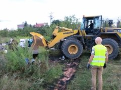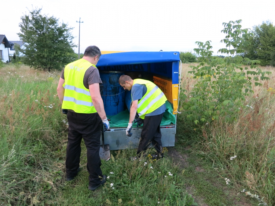 Na miejsce zdarzenia wezwana została wyspecjalizowana firma zajmująca się utylizacją niebezpiecznych substancji. Prace trwały do godz. 21.00. Usunięto i wywieziono wszystkie zgromadzone tam odpady. Zdjęto także warstwę ziemi, która nasiąknięta została olejem. Wszystkie zebrane odpady i ziemia poddane zostaną utylizacji.