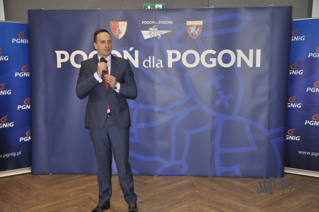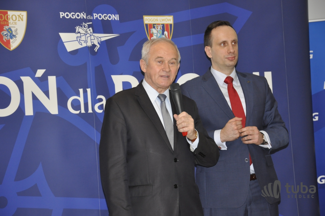 Na spotkaniu inaugurującym projekt Pogoń dla Pogoni, zaprezentowali się mediom: minister energii Krzysztof Tchórzewski, wiceprezes PGNiG Janusz Kowalski, prezydent Miasta Siedlce Wojciech Kudelski, prezes Pogoni Siedlce Michał Chromiński oraz prezes Pogoni Lwów Marek Hrobań.