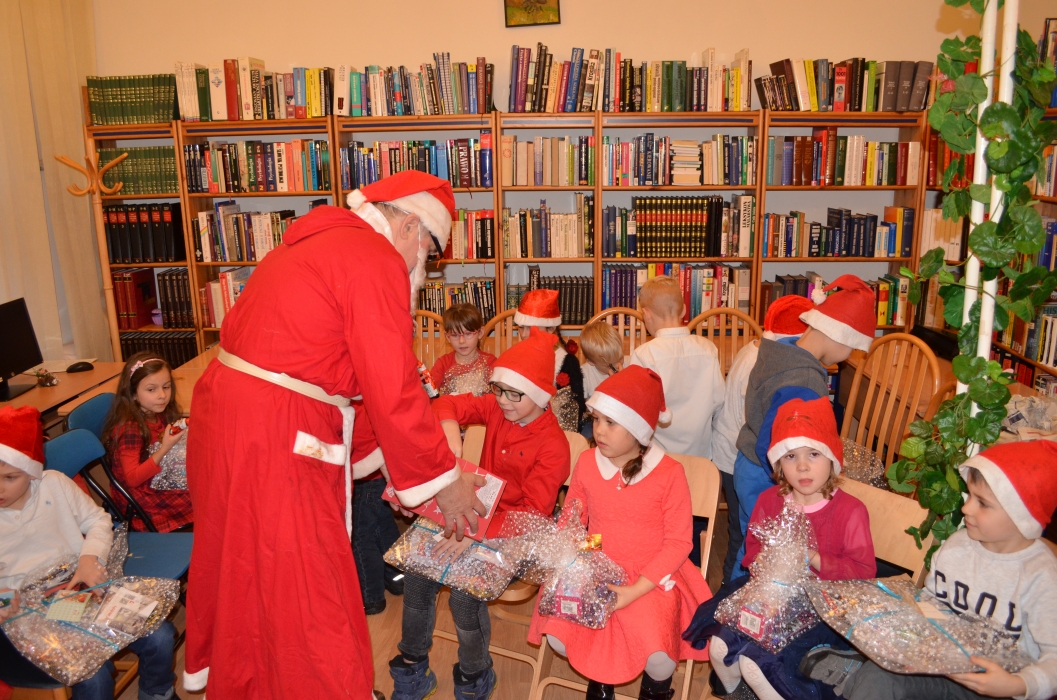 Nie zabrakło również odwiedzin Świętego Mikołaja, który przyszedł do biblioteki z workiem pełnym prezentów.