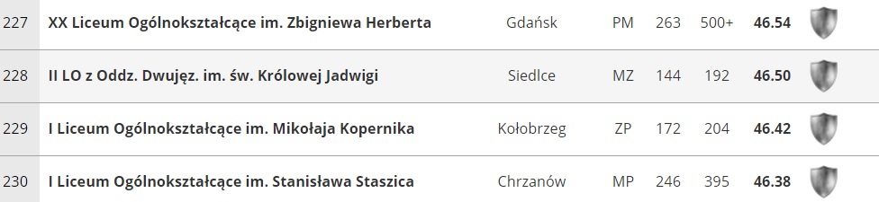 II LO z Oddz. Dwujęzycznymi im. św. Królowej Jadwigi uplasowało się na 228 miejscu w kraju.