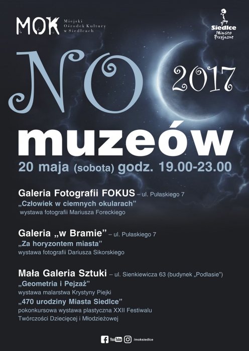 Noc Muzeów już w najbliższą sobotę (20 maja). W imprezie wezmą udział miejskie instytucje kultury, które będą otwarte na terenie Siedlec od godz. 18.00 do 24.00 w nocy.