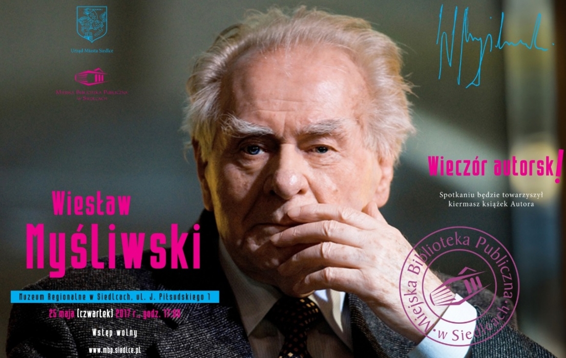 Miejska Biblioteka Publiczna w Siedlcach oraz Stowarzyszenie Pisarzy Polskich Oddział Warszawa zapraszają na wieczór autorski wybitnego pisarza Wiesława Myśliwskiego, autora wielu znakomitych powieści m. in.: „Kamień na kamieniu”, „Widnokrąg”, „Traktat o łuskaniu fasoli”, „Ostatnie rozdanie”.