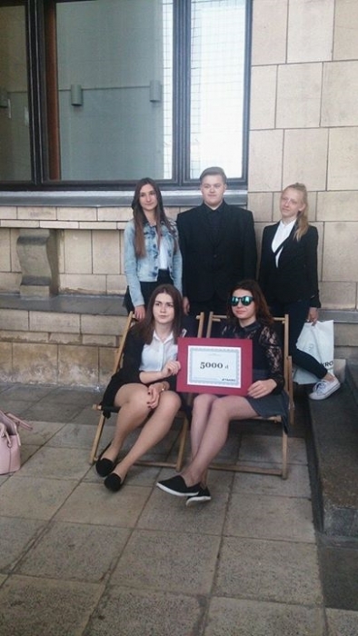 Uczniowie, wchodzący w skład zwycięskiego zespołu : Paulina Kita, Monika Mirosław, Katarzyna Jońska, Natalia Somla, Kamila Zboina, Kamil Biardzki i Mateusz Skup.
