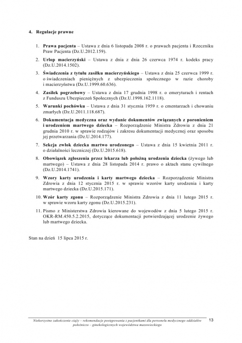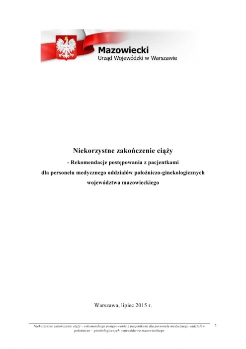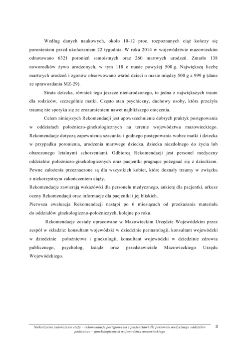 Rekomendacje trafią do wszystkich 52 oddziałów położniczo-ginekologicznych na Mazowszu. W 2014 r. w województwie odnotowano około 7 tys. przypadków niekorzystnego zakończenia ciąży (samoistnych poronień, martwych urodzeń oraz śmierci żywo urodzonych noworodków). Celem dokumentu opracowanego w Mazowieckim Urzędzie Wojewódzkim jest wprowadzenie do praktyki szpitalnej zasad opieki nad matką oraz postepowania zapewniającego możliwość pożegnania się z dzieckiem.