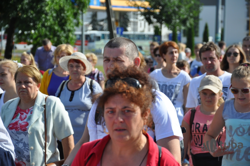 W tym roku spod siedleckiej katedry pielgrzymi wyruszyli w drogę na Jasną Górę po porannej Mszy Świętej odprawionej przez biskupa siedleckiego Kazimierza Gurdę w sześciu grupach, w tym grupa ze Zbuczyna.
