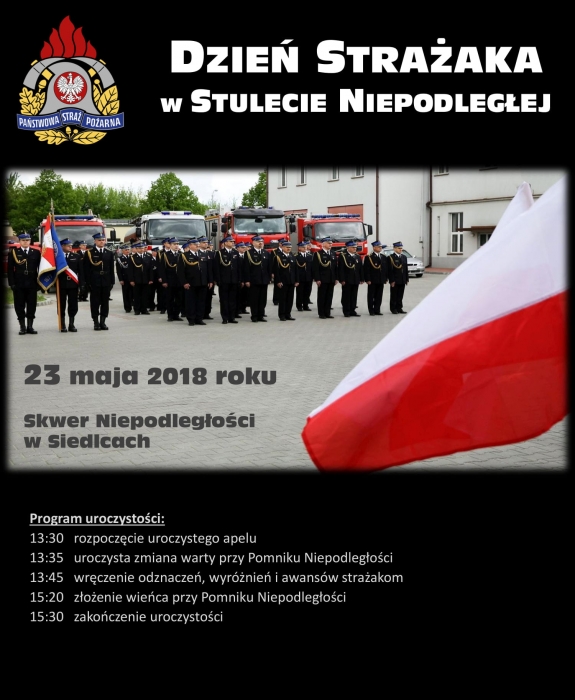 23 maja 2018 roku na Skwerze Niepodległości odbędzie się uroczysty apel z okazji Dnia Strażaka.