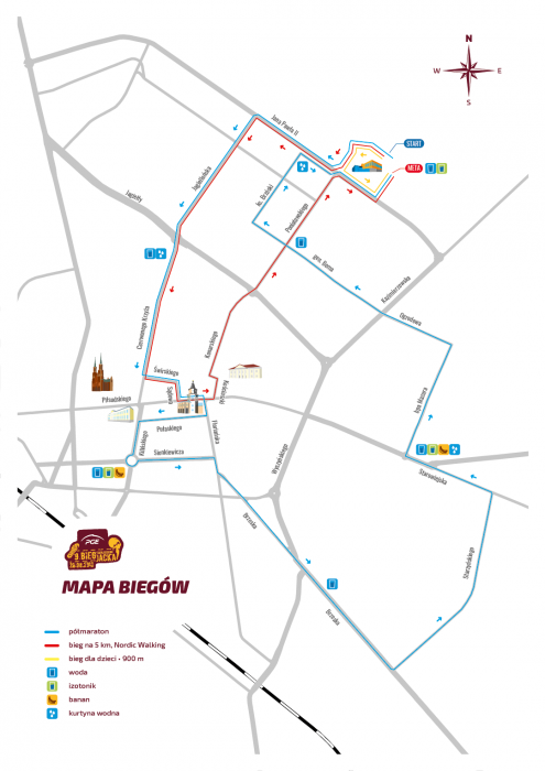 Start półmaratonu zaplanowano o godzinie 8:30 rano, by uniknąć największych upałów, a końcówka sierpnia zapowiada się równie gorąco jak cały ten miesiąc. Organizatorzy zwracają szczególną uwagę na względy bezpieczeństwa, stąd duża liczba punktów nawadniania i odżywczych oraz trzy kurtyny wodne na odcinku 10 km (półmaraton biegniemy po dwóch pętlach). Zabezpieczenie medyczne na czele z Dyrektorem Medycznym Biegu - lekarzem SOR stanowią nie tylko karetki pogotowia ratunkowego, ale także patrole ratowników na skuterze, rowerze i hulajnodze. Wszystko, by jak najszybciej dotrzeć do zawodnika wymagającego pomocy.