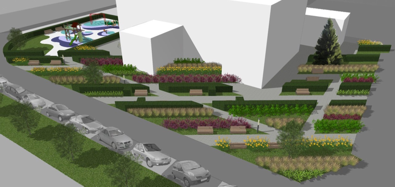 • Wydzielenie i urządzenie ogrodu sensoryczno-terapeutycznego z infrastrukturą techniczną.