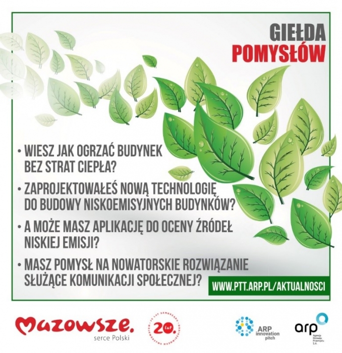 W ramach konkursu Giełda Pomysłów – ARP Innovation Pitch poszukiwane są rozwiązania z obszaru efektywności OZE, termomodernizacji, technik grzewczych, technik ograniczających emisję zanieczyszczeń pochodzących ze spalania paliw stałych w indywidualnych instalacjach grzewczych, technik organizacyjnych, technologii informatycznych oceny źródeł niskiej emisji czy innowacyjnych projektów z obszaru komunikacji społecznej.