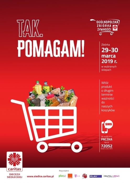 Ponad 27 ton żywności – to bilans ostatniej zbiórki, przeprowadzonej przez Caritas Diecezji Siedleckiej. Czy w tym roku padnie kolejny rekord? Dowiemy się tego wkrótce. Już 29 i 30 marca 2019r. (piątek, sobota) wolontariusze będą dyżurować w sklepach podczas XVI edycji ogólnopolskiej zbiórki żywności ph.: „Tak, POMAGAM!”.
