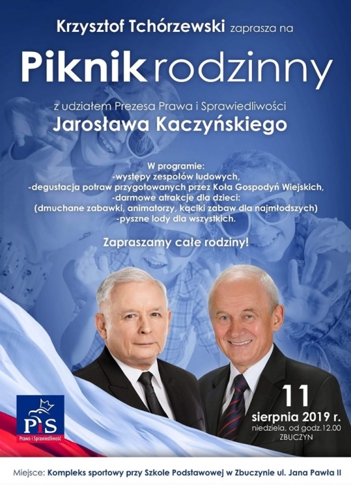 11 sierpnia w Zbuczynie odbędzie się piknik rodzinny. Gościem festynu będzie prezes Prawa i Sprawiedliwości Jarosław Kaczyński.