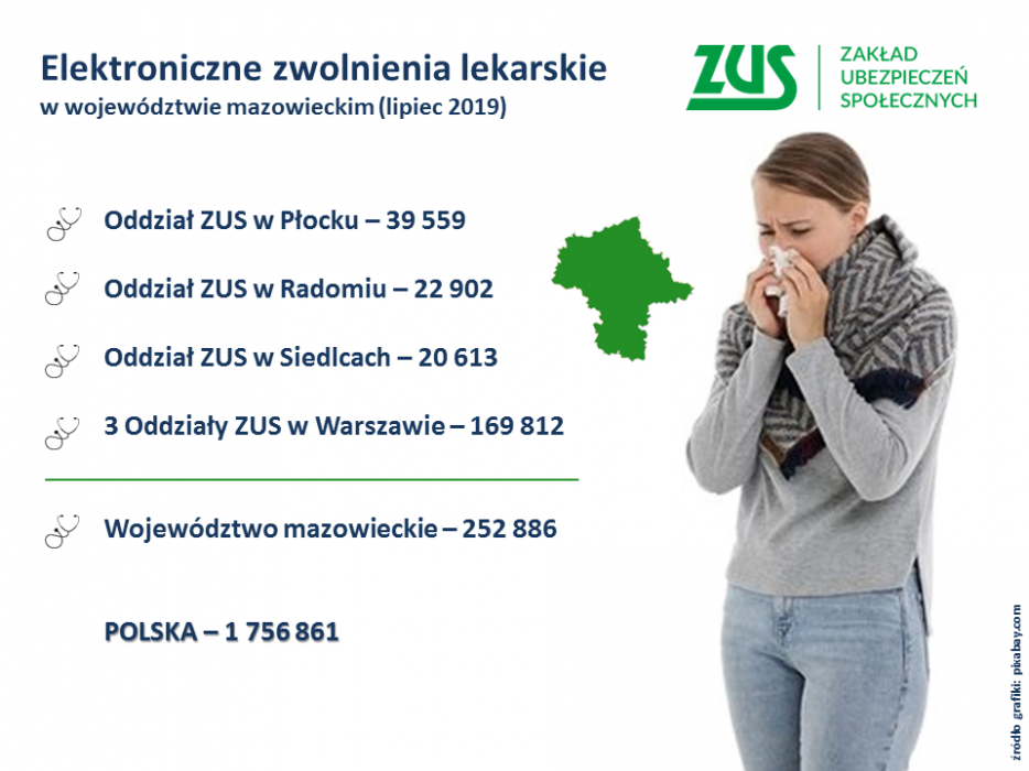 W lipcu wystawiono w województwie mazowieckim tylko 54 papierowe zwolnienia lekarskie, z czego zaledwie 7 poza warszawskimi oddziałami ZUS.