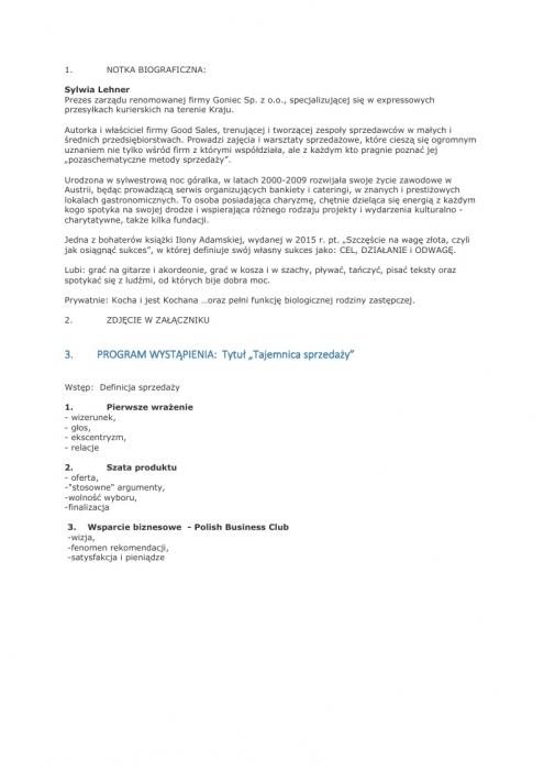 - prezentacji siebie i swojej firmy przed uczestnikami business lunchu,