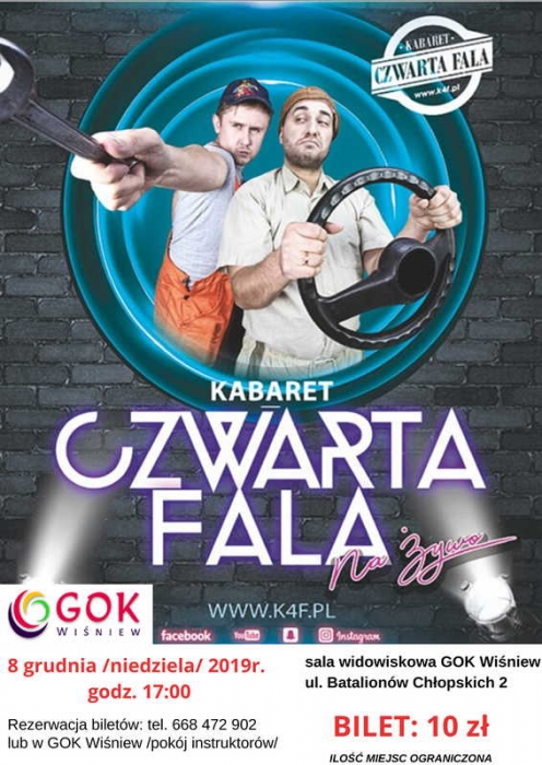 Gminny Ośrodek Kultury w Wiśniewie zaprasza na skecz Kabaretu Czwarta Fala.