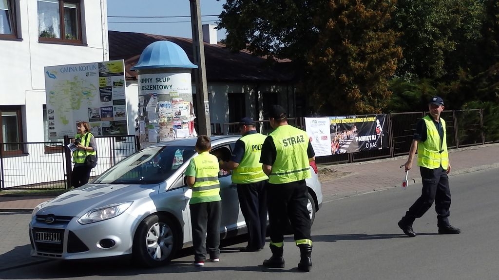 Wczoraj (16.09) Policjanci z Komisariatu Policji w Mokobodach wspólnie z uczniami Szkoły Podstawowej z Kotunia, strażakami OSP, pracownikami Urzędu Gminy w Kotuniu oraz członkami nieformalnej grupy „Zakręceni dla Kotunia” przeprowadzili w tej miejscowości działanie w ramach prowadzonej od początku września policyjnej akcji „Bezpieczna Droga do Szkoły”. Inicjatorem przedsięwzięcia były osoby zrzeszone wokół grupy "Zakręceni dla Kotunia”. Od godziny 10 do 12 policjanci biorący udział w tej akcji sprawdzali stan trzeźwości kierowców, a dzieci pod opieką nauczycieli na czele z dyrektor SP Ewą Wadas - Jastrzębską oraz strażaków z OSP rozdawały ulotki na temat bezpiecznej drogi do szkoły. Patronat nad całością objął Wójt Gminy Kotuń, Pan Grzegorz Góral. W działaniu wzięło udział 20 dzieci z SP w Kotuniu, drużyna OSP Kotuń, funkcjonariusze Policji z Komendantem Komisariatu w Mokobodach podinsp. Arturem Młotowskim oraz Wójt i pracownicy Urzędu Gminy w Kotuniu.