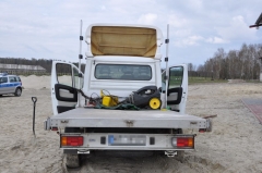 Przed kilkoma dniami (19.04) policjanci z Komisariatu Policji w Skórcu otrzymali sygnał o dwóch podejrzanych osobach, które przebywały na prywatnej posesji w miejscowości Wiśniew Kolonia, gdzie znajduje się m.in. hangar lotniczy. Na miejsce natychmiast skierowano patrol interwencyjny. Gdy funkcjonariusze dojeżdżali we wskazany rejon, zauważyli dwóch mężczyzn, którzy na widok policyjnego radiowozu rzucili się do ucieczki. Policjanci nie dali im jednak szans i po pościgu obydwaj zostali zatrzymani. Wyjaśniając okoliczności związane z zatrzymaniem ustalono, że przyjechali oni na posesję, a następnie włamali się do znajdującego się tam hangaru. Jednak podczas tej złodziejskiej wyprawy zakopał się im samochód i zajęci jego wyciągnięciem z piachu zdążyli skraść z wnętrza budynku jedynie kask ochronny. W czasie dalszych wyjaśnień policjanci ustalili, że auto, którym poruszali się mężczyźni, jak też tablice rejestracyjne założone na pojazd, również pochodzą z przestępstwa, a zostały skradzione kilka dni wcześniej na terenie Siedlec. Ponadto na platformie ładunkowej samochodu znajdowała się myjka ciśnieniowa pochodząca z innego włamania. Współpracując z KPP w Mińsku Mazowieckim ustalono, że na terenie jej działania zatrzymani dokonali dwóch innych przestępstw, tj. kradzieży i uszkodzenia mienia. Sprawcami okazali się 30 – letni mieszkaniec gm. Siedlce, który objęty został dozorem policyjnym oraz 35 – letni siedlczanin, aresztowany (22.04) decyzją sądu na najbliższe 3 miesiące. Za przestępstwa te grozi im obecnie kara do 10 lat pozbawienia wolności.