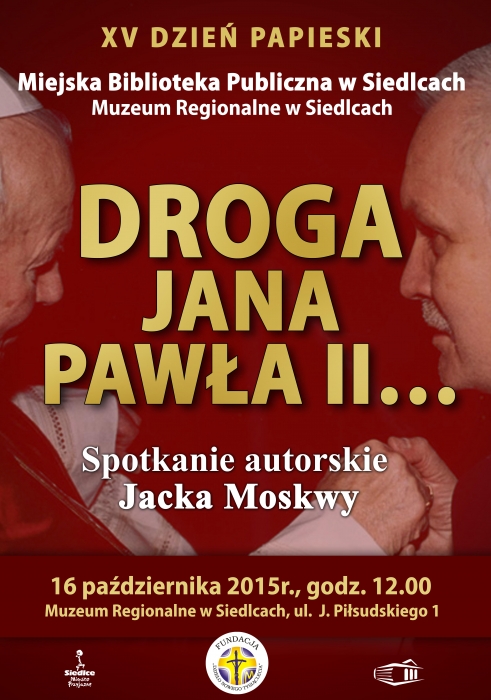 W dniu 16 października, o godzinie 12.00 Miejska Biblioteka Publiczna w Siedlcach zaprasza na spotkanie autorskie Jacka Moskwy „Droga Jana Pawła II … ".