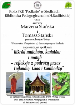 W dniu 27 października 2015 r. (wtorek) o godz. 17. 00 w Bibliotece Pedagogicznej w Siedlcach (Asłanowicza 2) odbędzie się kolejne z cyklu podróżniczo – przyrodniczych spotkanie zorganizowane przez Koło PKE „Podlasie” w Siedlcach.