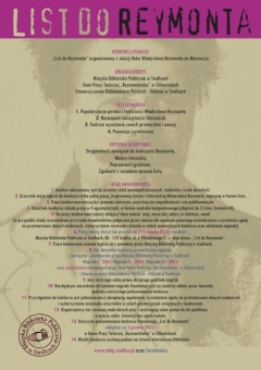Miejska Biblioteka Publiczna w Siedlcach wspólnie z Domem Pracy Twórczej „Reymontówka” w Chlewiskach oraz Stowarzyszeniem Bibliotekarzy Polskich – Oddział w Siedlcach organizuje konkurs literacki „LIST DO REYMONTA”.