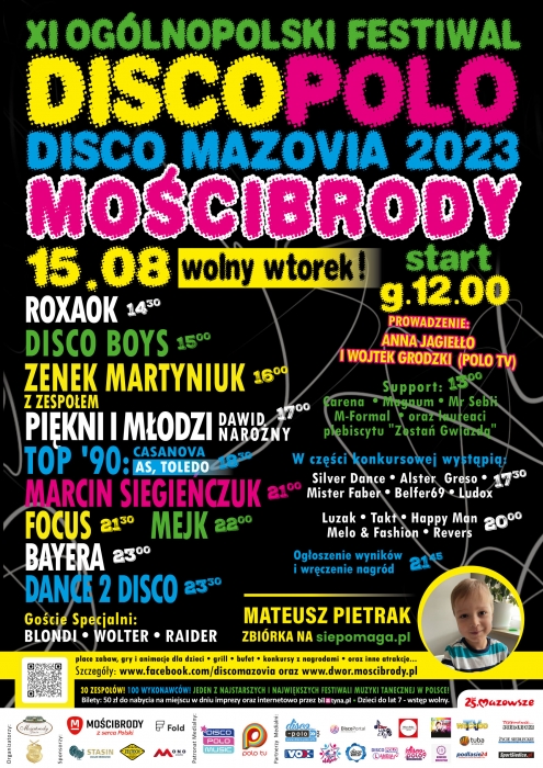 We poniedziałek 15 sierpnia odbędzie się XI edycja Ogólnopolskiego Festiwalu Muzyki Tanecznej Disco Mazovia 2023 w Mościbrodach pod Siedlcami.
