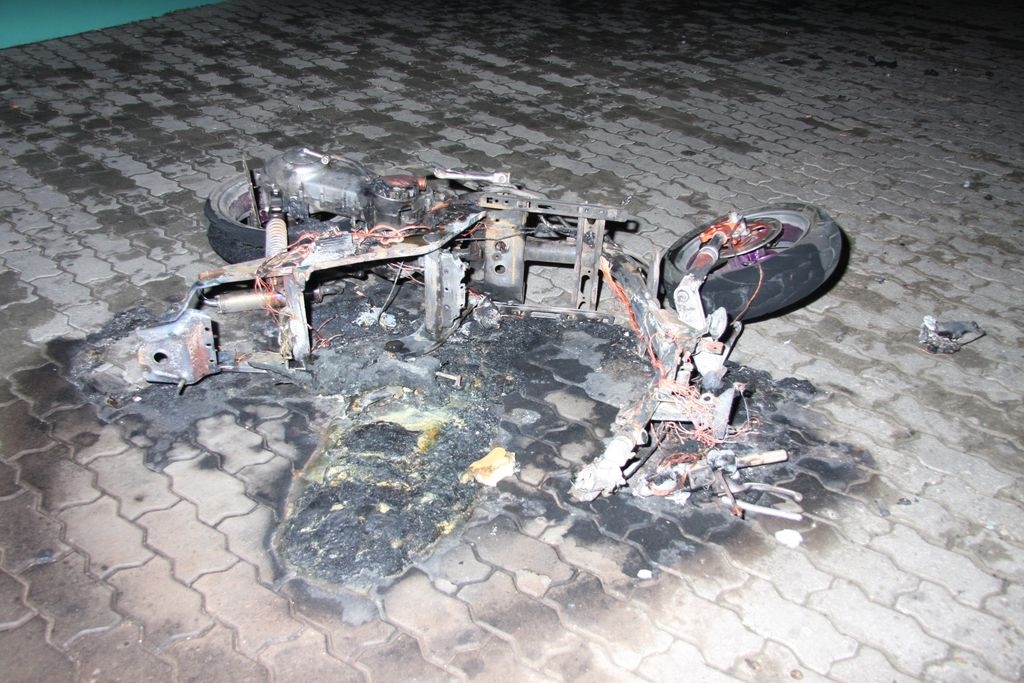 Dzisiaj (2.11) około godz. 2.00 w nocy siedleccy policjanci w rejonie ul. Wiszniewskiego zatrzymali 4 mieszkańców naszego miasta, którzy wcześniej z nieznanych powodów podpalili stojący przy jednym z bloków na ul. Starowiejskiej skuter. Jednoślad uległ całkowitemu spaleniu. Sprawcy odpowiedzą w najbliższym czasie za uszkodzenie mienia, za które grozić im może do 5 lat pozbawienia wolności.