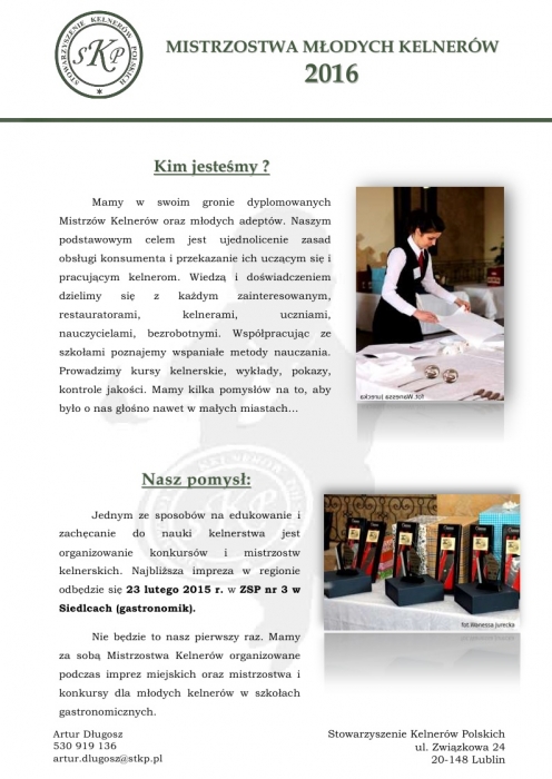 Młodzi Kelnerzy będą mogli sprawdzić swoje umiejętności w trakcie Mistrzostw Młodych Kelnerów – Siedlce 2016 r.